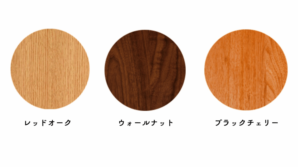 主に、レッドオーク材・ウォールナット材・ブラックチェリー材の3材種✨